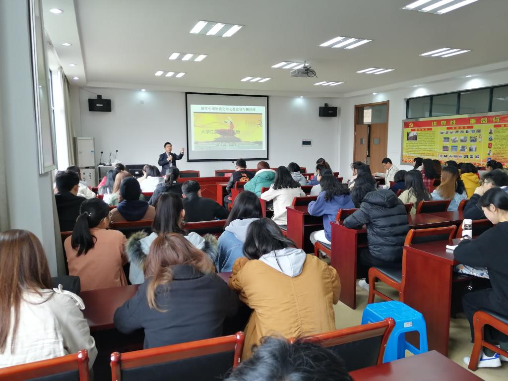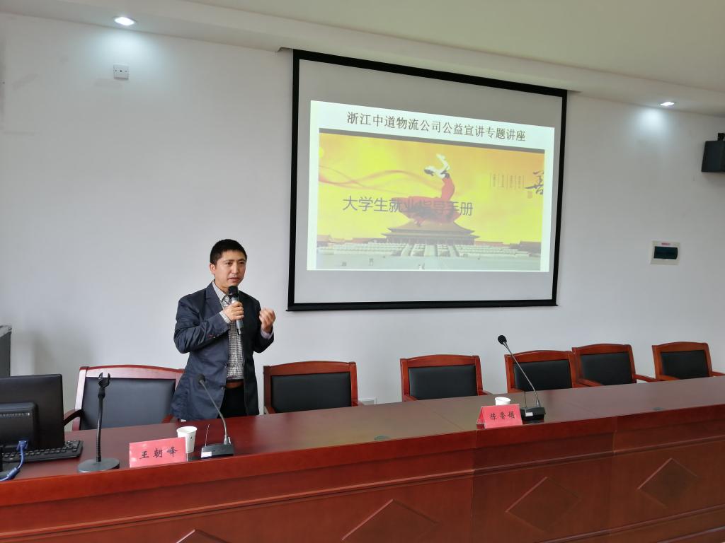 4月4日,威尼斯432888cam邀请浙江中道物流有限公司副总经理王朝峰来校作大学生就业指导讲座,学院院长杜才平主持讲座,国际经济与贸易专业学生参加讲座。