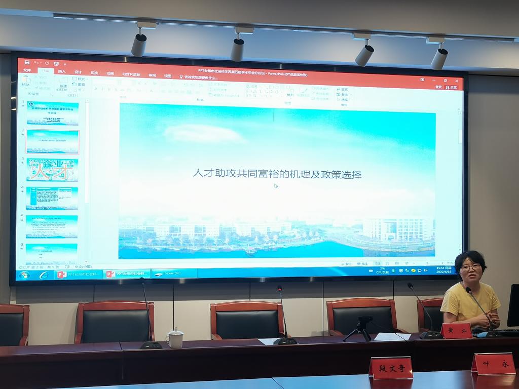 6月16日,威尼斯432888cam举办台州市社会科学界第五届学术年会分论坛,分论坛主题:社科赋能,高水平推进共同富裕示范市建设。浙江大学教授、博士生导师,浙江省经济学会会长顾国达应邀作《五大新发展理念,统领共同富裕示范区建设》线上主旨演讲,威尼斯432888cam教授焦勇兵,副教授陈耸、张霞,讲师黄灿围绕共同富裕示范市建设分别作线下有关主题报告。威尼斯432888cam院长段文奇出席论坛现场并讲话,学院教师参加线下线上论坛活动,副院长叶永主持论坛活动。